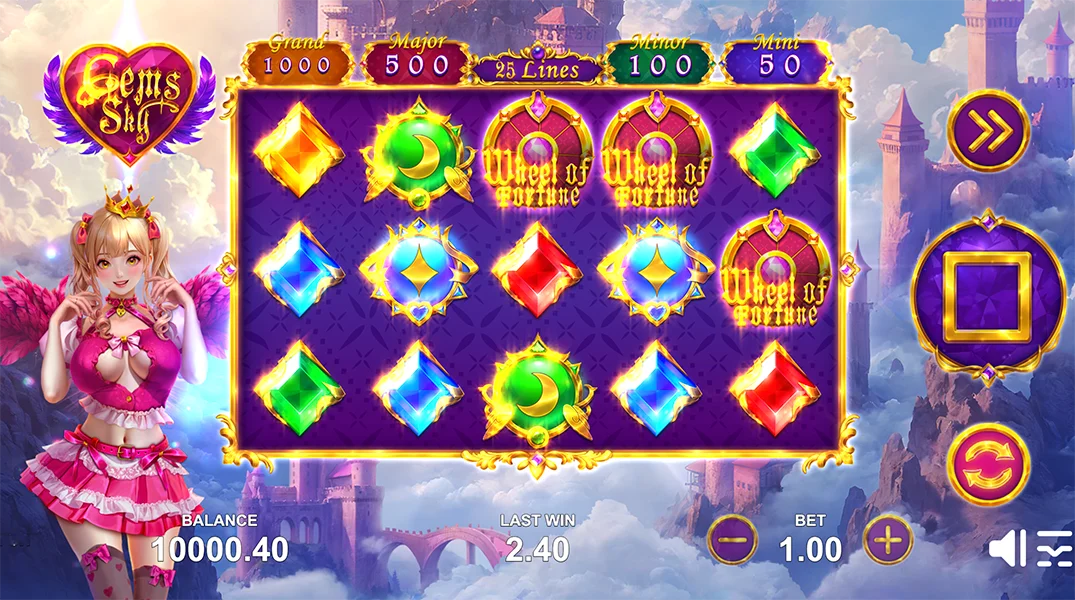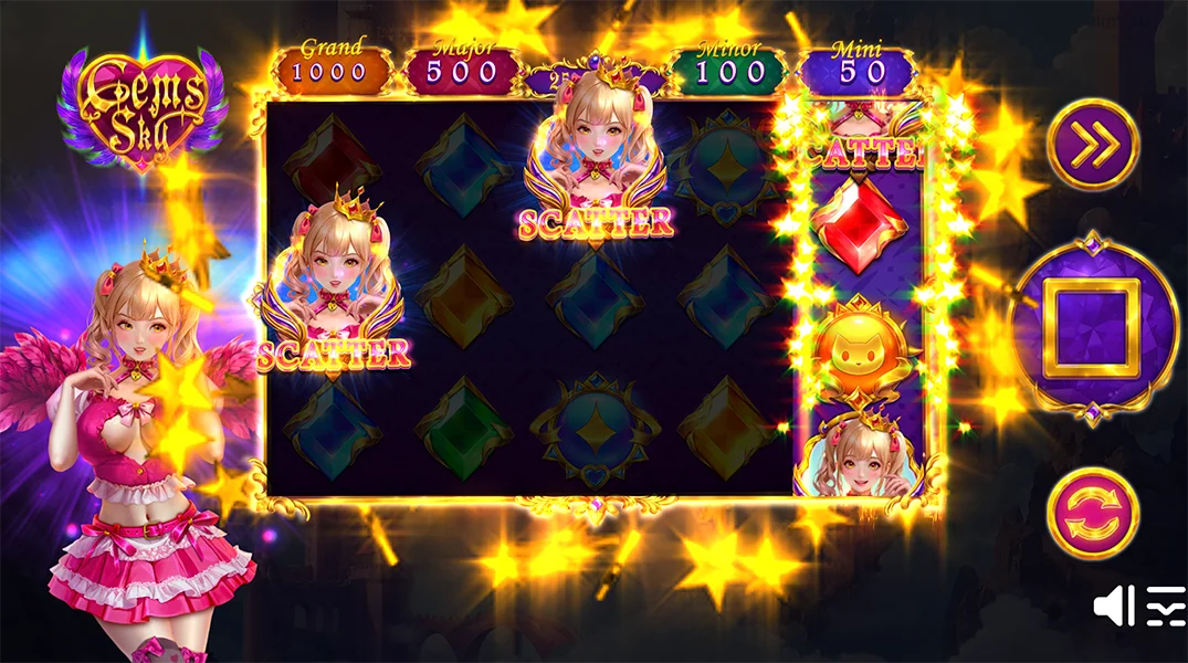 Gems Sky vous invite à un voyage palpitant dans un château majestueux, où une princesse vous guidera à travers un monde de joyaux étincelants et de victoires inoubliables. Des graphismes éclatants, des animations captivantes et des bonus palpitants s’associent pour offrir une expérience de jeu véritablement immersive.
