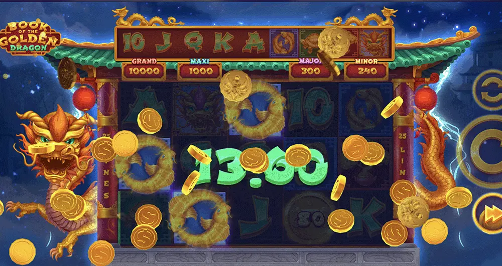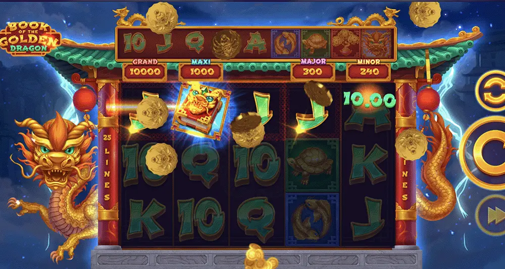 Il mistico Libro del Drago d’Oro funge da simbolo speciale che attiva la funzione Multichance. Durante i giri gratuiti, questo libro accumula simboli casualmente mentre giochi. Tutti i simboli raccolti si trasformano in simboli in espansione durante il round di giri gratuiti, aumentando le tue possibilità di vincite enormi!