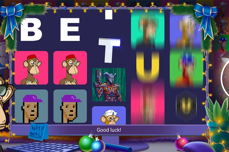Raccogli i simboli B, E, T, U e il gettone NFT sulla slot per attivare il gioco bonus in cui puoi vincere 1 dei 3 premi garantiti! Scegli il simbolo giusto per il moltiplicatore più alto!