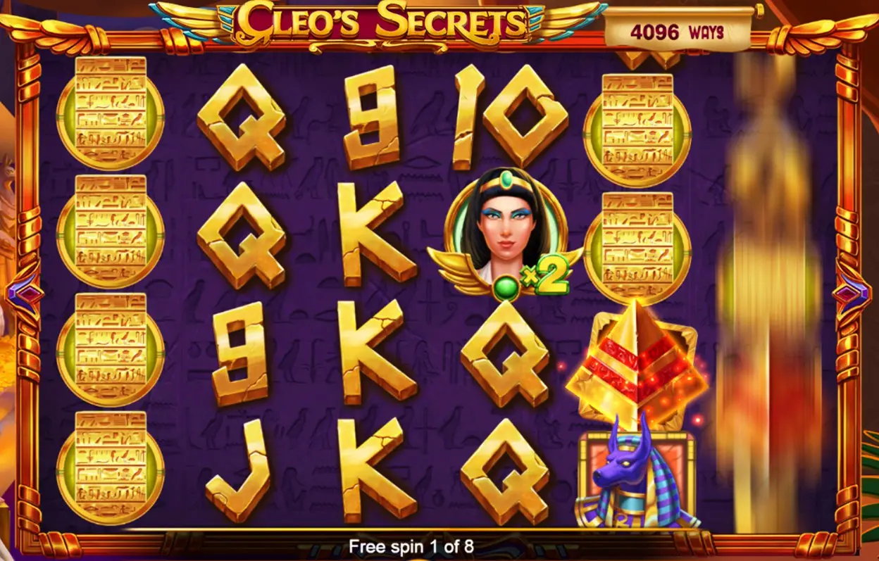 Conheça Cleópatra, a Grande Rainha do Egito, cara a cara. Uma honra com a qual todos só poderiam sonhar. Ela pode substituir todos os símbolos do jogo e ajudar você a conseguir uma vitória ainda maior em todas as 4.096 maneiras.